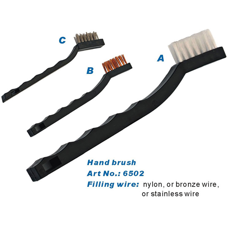 Sikat tangan utilitas pembersih senjata dengan bulu yang tebal. Berbentuk sikat gigi, pegangan plastik, kabel kuningan dan kabel nilon untuk pilihan.