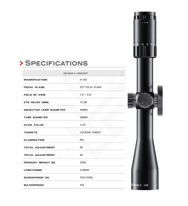 HD MAX 4-16X44SFP HD Lensa Tinggi Berburu Teleskop Monokuler Grosir