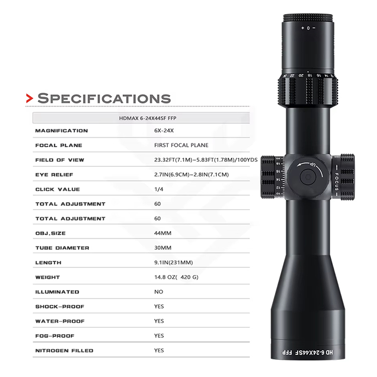 HD MAX 6-24X44 SF FFP HD Lensa Tinggi Berburu Teleskop Monokuler Grosir