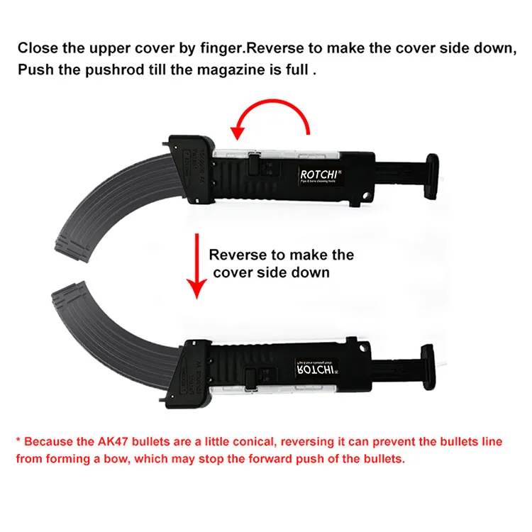 ● Digunakan untuk memuat kartrid 7.62X39mm ke dalam magasin AK dengan kapasitas 10/20/30 atau lebih besar.