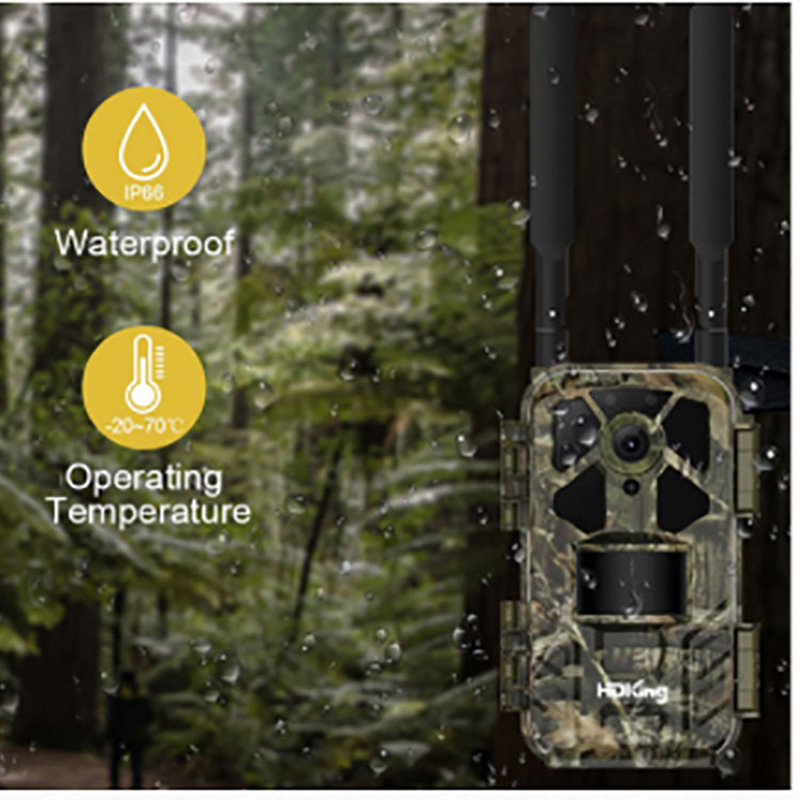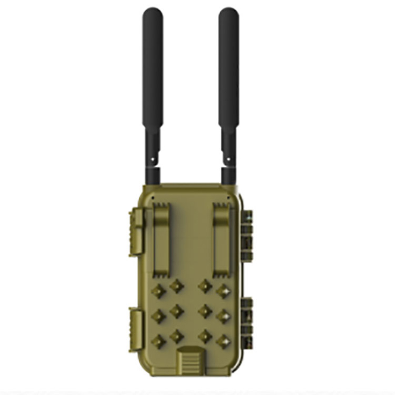 Nirkabel 4G / Desain antena ganda / IP65 tahan air / Sensor CMOS 5,0M Piksel / Waktu Pemicu Cepat 0,5S / Waktu Siaga Lama / Jangkauan Penglihatan Malam Panjang / Suhu pengoperasian