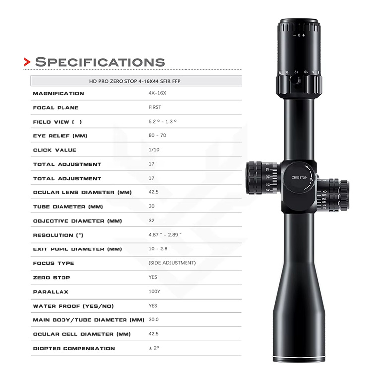Optik HD PRO ZERO STOP 4-16x44 SFIR FFP Berburu Tahan Guncangan Tinggi
