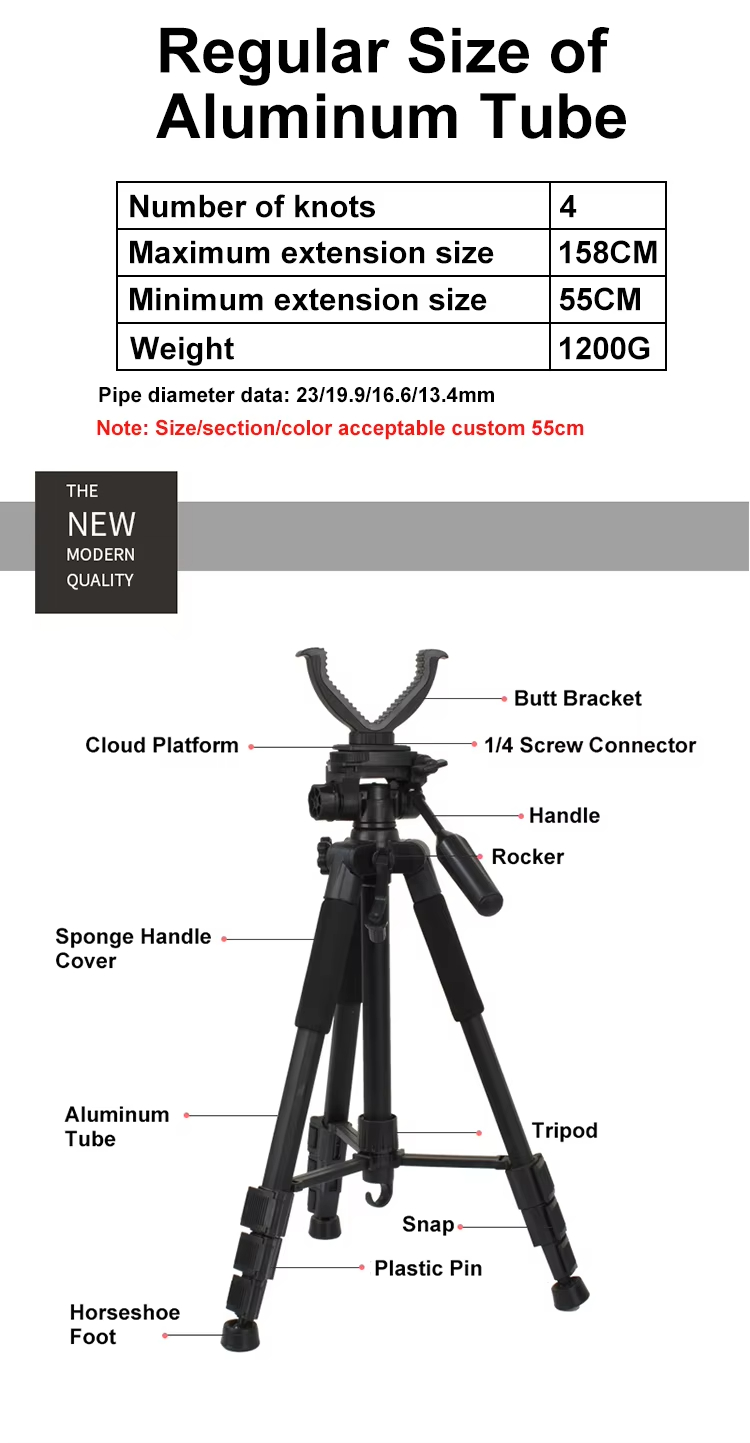 Kustomisasi yang Dipersonalisasi Dudukan Tripod Berputar Berbentuk V/Paduan Aluminium untuk Tongkat Menembak Berburu