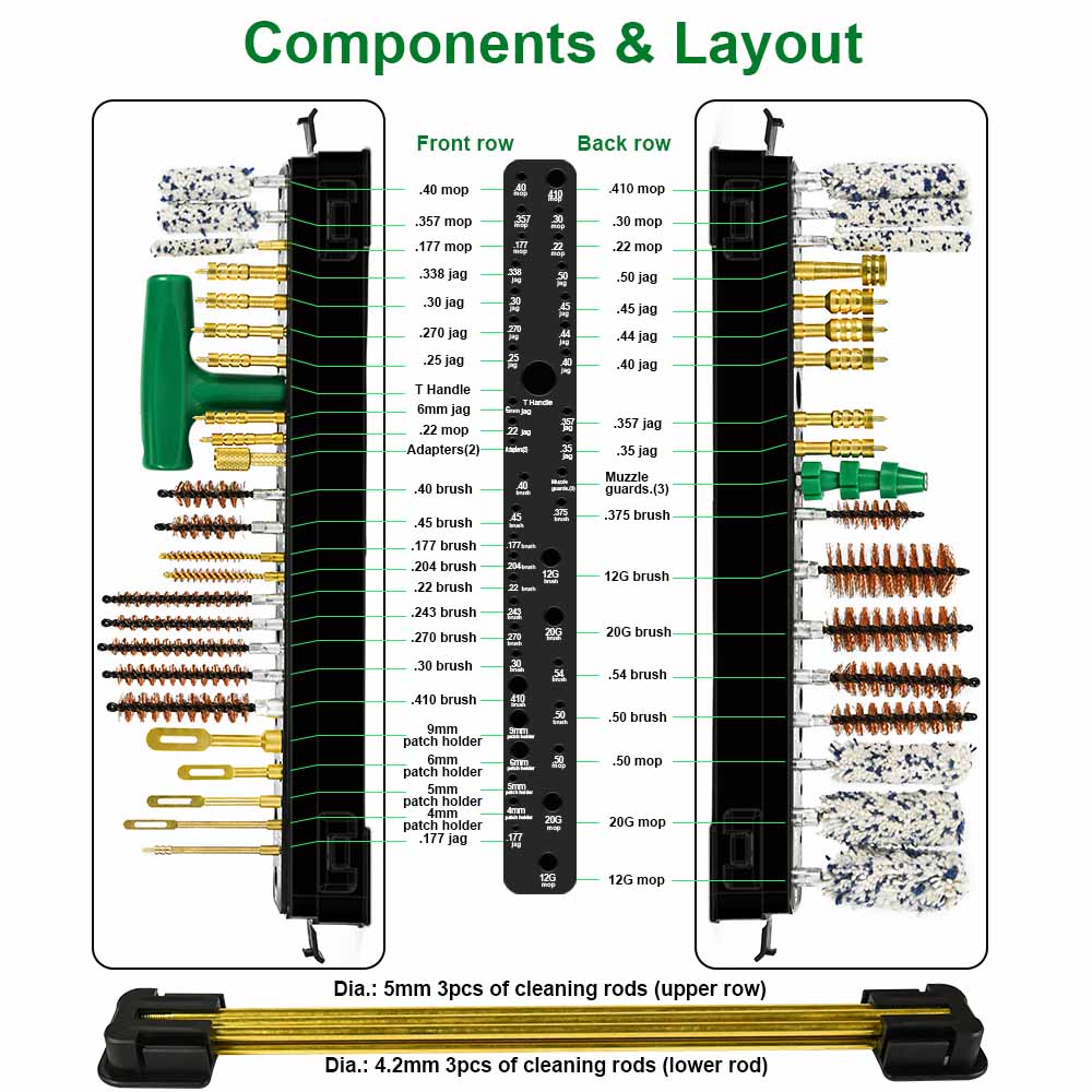 Aksesori Kit Pembersih Senjata Universal Perlengkapan Universal Profesional untuk Semua Kit Pembersih Senjata dengan casing plastik transparan