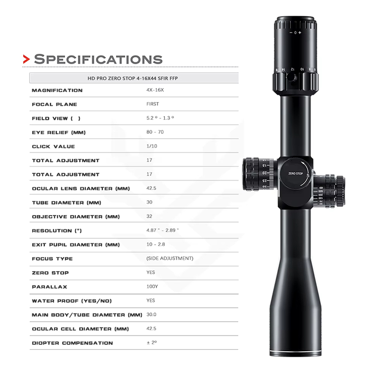 ZERO STOP 4-16X44 SFIR FFP-A Diameter 30MM HD Transmisi Cahaya Zero Stop Hunting Scope Ffp